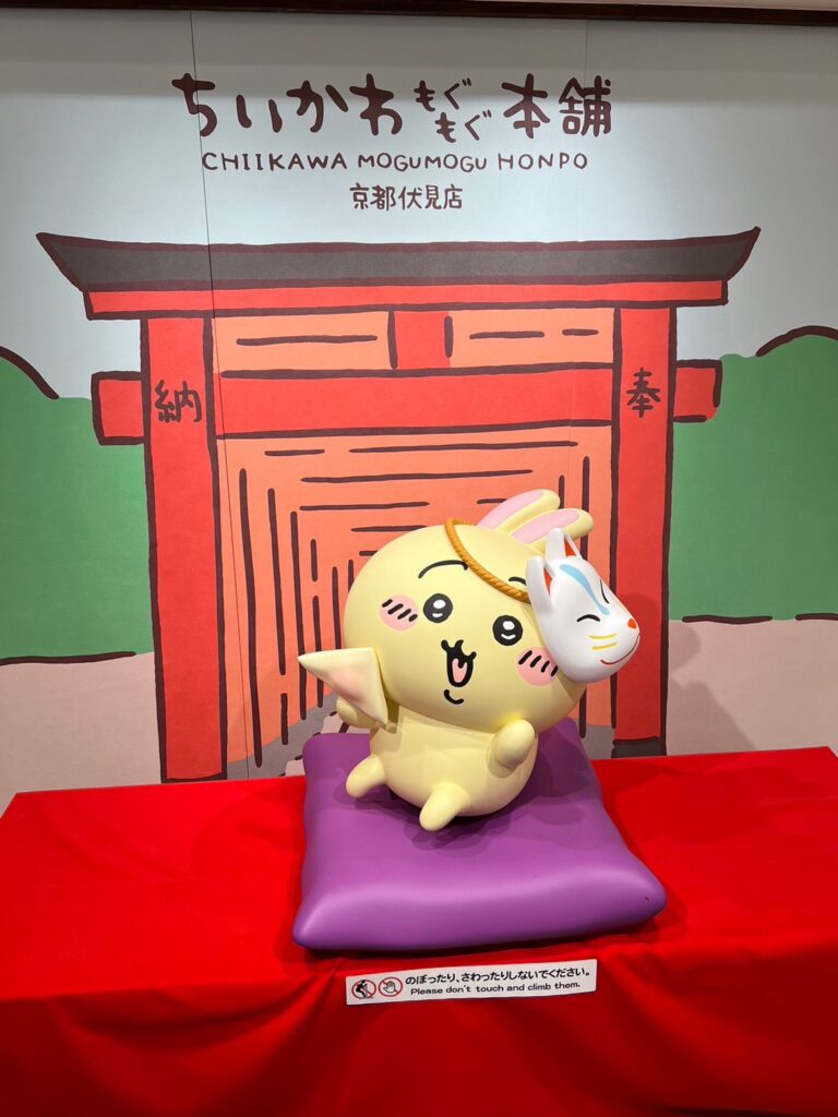 2日目は、すごく人気で抽選に当たるか整理券をもらわないと入場することができない京都稲荷の『ちいかわもぐもぐ本舗』に行くことができました🌝